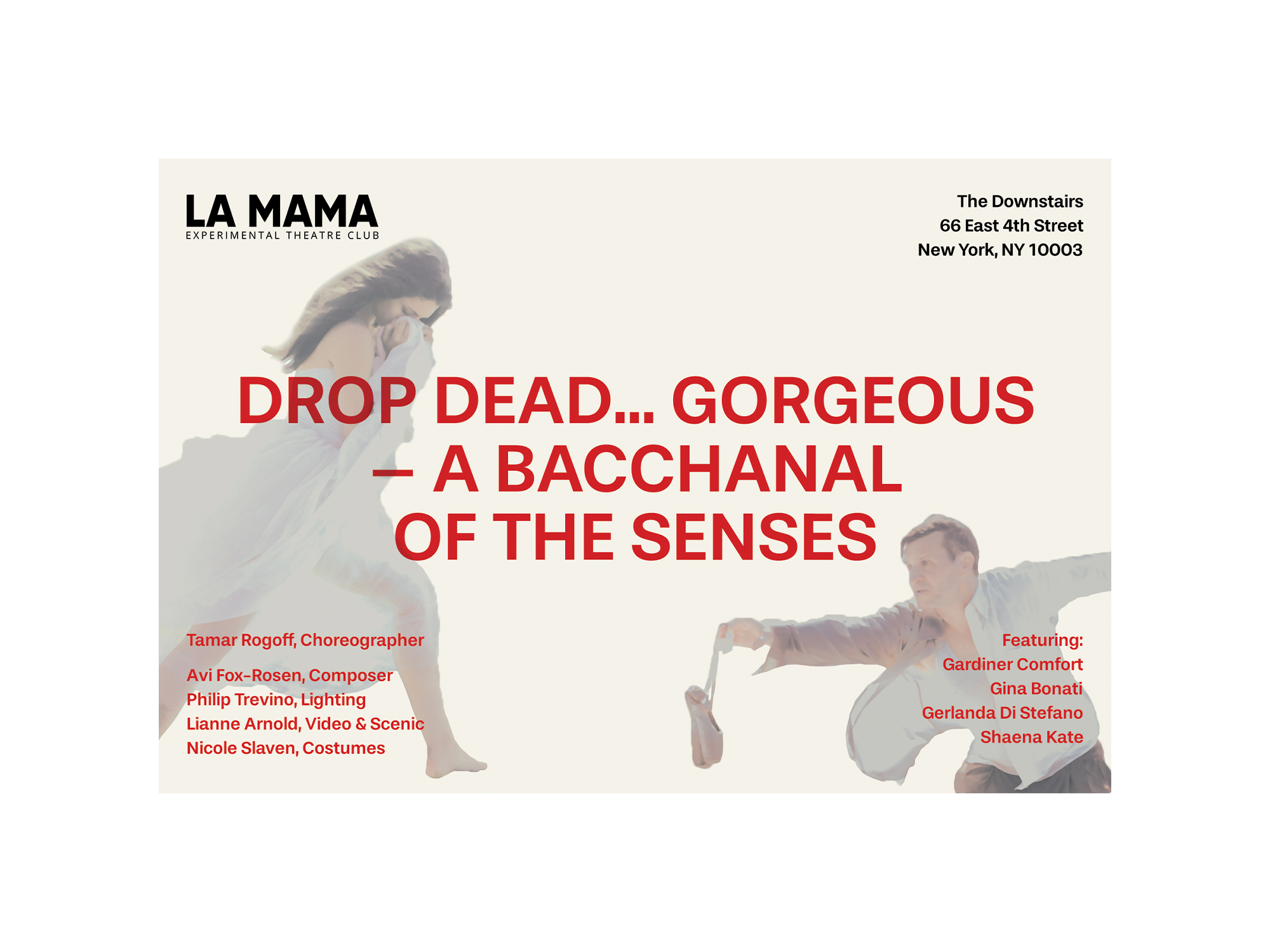 Poster and postcard concept designed with Tamar Rogoff and Sara Gierc for Rogoff's multimedia theater production at La MaMa in NYC.